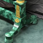 Malachite is a semi-precious stone and also a valuable copper ore, hydrous copper carbonate. It is a beautiful green earth stone with irregular black banding. It is easily recognized by its color, green streak, and silky or velvety luster. It was used to make beautiful jewelry and to adorn only the finest pieces of furniture. In the 18th and 19th centuries malachite was popular with Russian Czars and Nobility. They often used it to decorate their palaces and own personal furnishings. The Hermitage Museum has one of the biggest and best displays of Malachite pieces in the world.