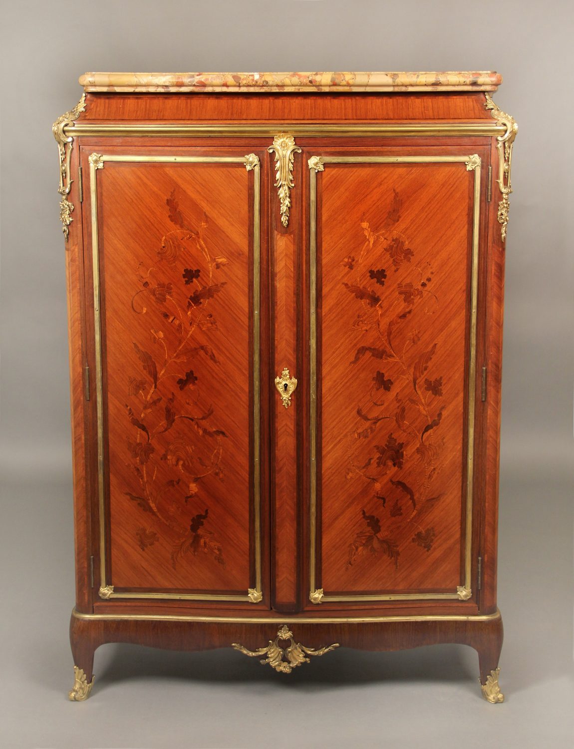 A Fine Late 19th Century Gilt Bronze Mounted Transitional Style Marquetry Cabinet By Durand