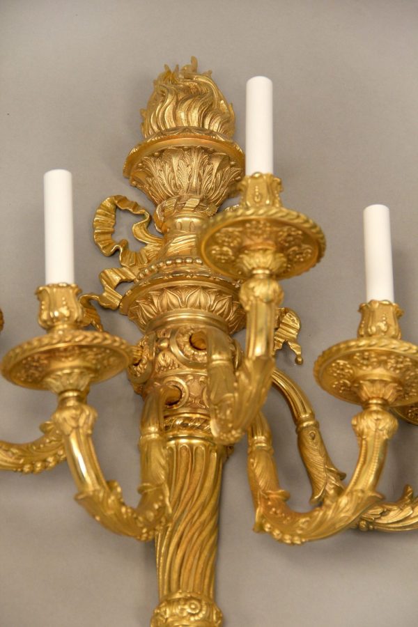 A Very Fine Pair of Early 20th Century Gilt Bronze Five Light Sconces