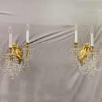 A Superb Pair of Late 19th Century Gilt Bronze and Baccarat Crystal Three Light Sconces