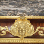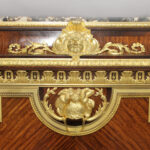 Linke was born in Pankraz in Bohemia and was celebrated by the French as one of the greatest ébénistes of meubles de style at the turn of the century. He began his apprenticeship with a Bohemian master at the age of thirteen. Four years later, he toured Austria, settling and working in Vienna for two years.Linke arrived in Paris in 1875, and by 1881 he had established his own small workshop at 170 rue du Faubourg St. Antoine. Taking 18th century styles as his starting point and adapting earlier styles to contemporary taste, Linke produced fine quality furniture, steadily expanding his business during the next 20 years. He firmly established his reputation after receiving a gold medal at the Paris Universal Exhibition of 1900 for his extraordinary Grand Bureau. He continued to use international fairs as a means of exploring new markets, exhibiting at the 1904 World’s Fair in St. Louis, the Liege in Belgium and the 1908 Franco-British exhibition in London. Linke’s highly original designs sprang from the Régence and Rococo styles but were imbued with something quite new – Rococo curves were laden with gilt-bronze sculptural mounts in the tradition of A.-C. Boulle (1642-1732) or Charles Cressent (1685-1758). Stylistically, the new designs still adhered to the Rococo; the novelty, however, was Linke’s fusion of the Rococo with the liveliness and the fluidity of the ‘art nouveau’. The Revue called Linke’s creations entierement nouveau, and continued to say that ‘Linke’s stand is the biggest show in the history of art furniture in the year 1900…’ The mounts, or rather sculpture, were characteristic of the finest pieces from the Linke workshops. The most original designs were almost certainly created in collaboration with the enigmatic sculptor Léon Messagé, who excelled in creating lively, high relief, allegorical figures recalling the styles of Boucher and Falconet.