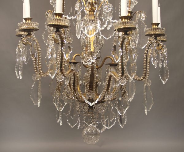 A Wonderful Late 19th Century Gilt Bronze and Baccarat Crystal Twelve Light Chandelier