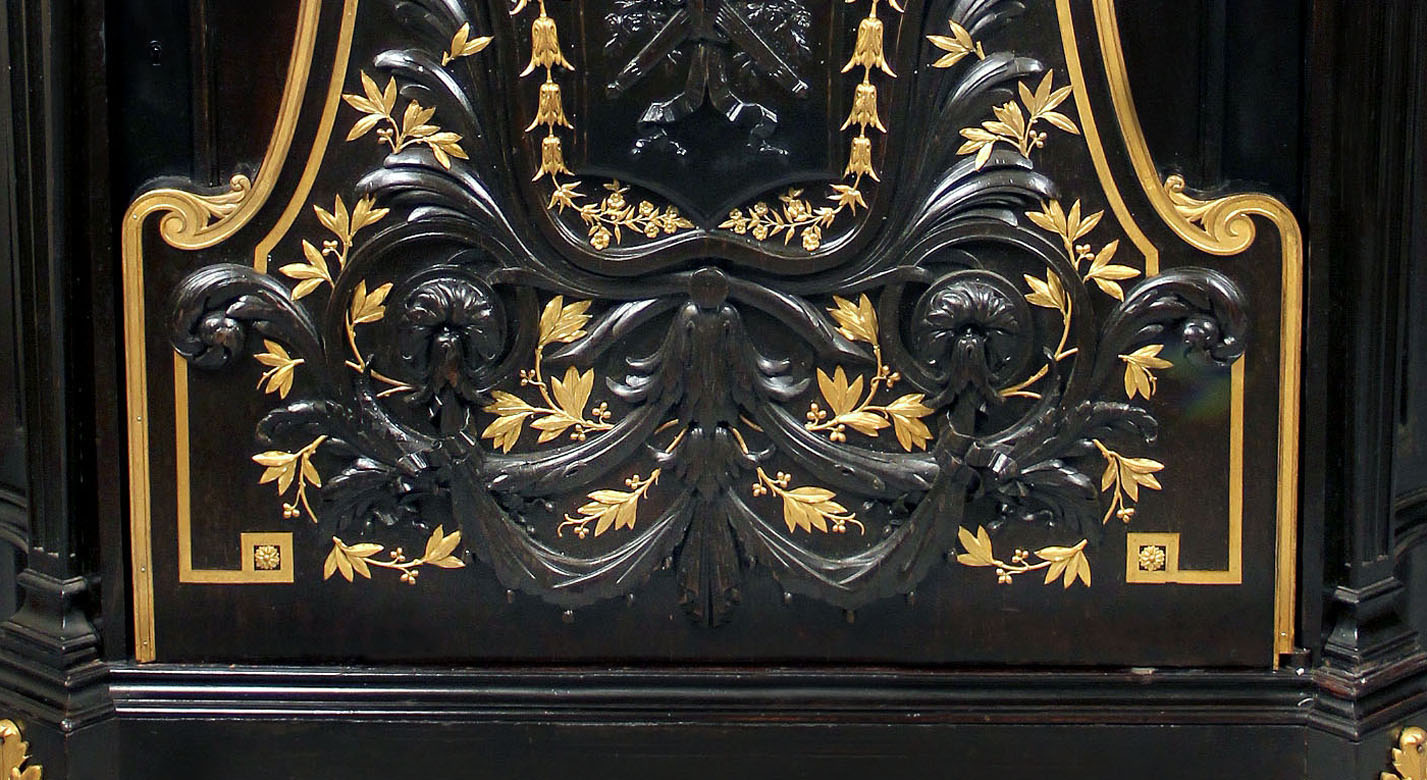 A Wonderful Late 19th Century Napoleon III Gilt Bronze Mounted Carved Ebonized Cabinet By Lanneau