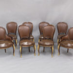 A Wonderful Set of Eight Late 19th Century Gilt Bronze Mounted Louis XV Style Dining Chairs