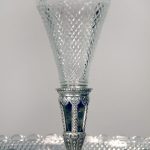 Founded in 1764 by royal consent, the firm of Baccarat became known as the Compagnie des Cristalleries de Baccarat in the nineteenth century. Francois-Eugene de Fontenay, who joined the company in 1841, discovered that the addition of nickel oxide in the manufacturing process resulted in a perfectly clear product, ‘crystal glass’, that was free of discoloration and that imitated precious rock crystal. For this discovery, the Baccarat company was awarded a gold medal at the French Expositions des Produits de l’Industrie in 1844. Continually experimenting with their manufacturing process, the quality of Baccarat’s ‘crystal glass’ improved, reaching the highest level by the end of the century. Today, Baccarat ‘crystal glass’ is highly regarded, not only for its unusual clarity, but for its great solidity and weight, allowing for the bold engraving and cutting that are Baccarat’s hallmark.