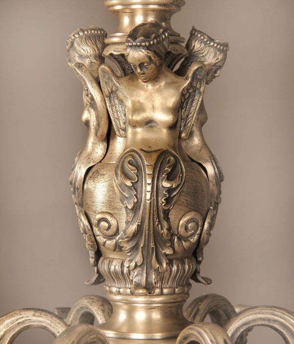 An Interesting Late 19th Century Silvered Bronze and Alabaster Sixteen Light Chandelier